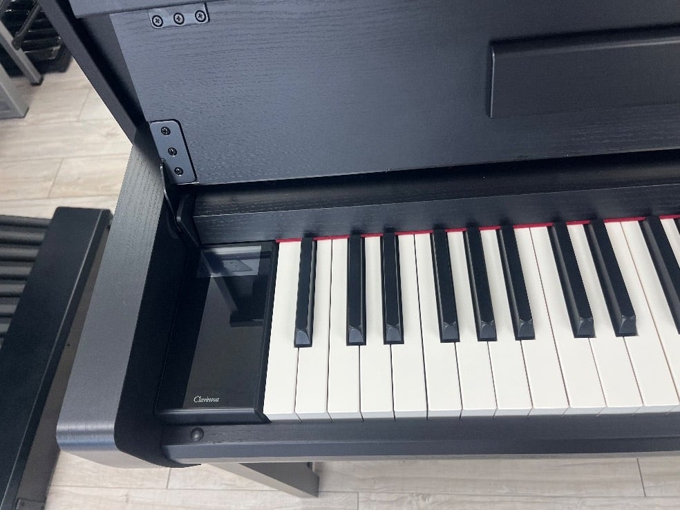 鍵盤: グランドタッチ鍵盤、木製(白鍵)、黒檀調仕上げ、エスケープメント付き