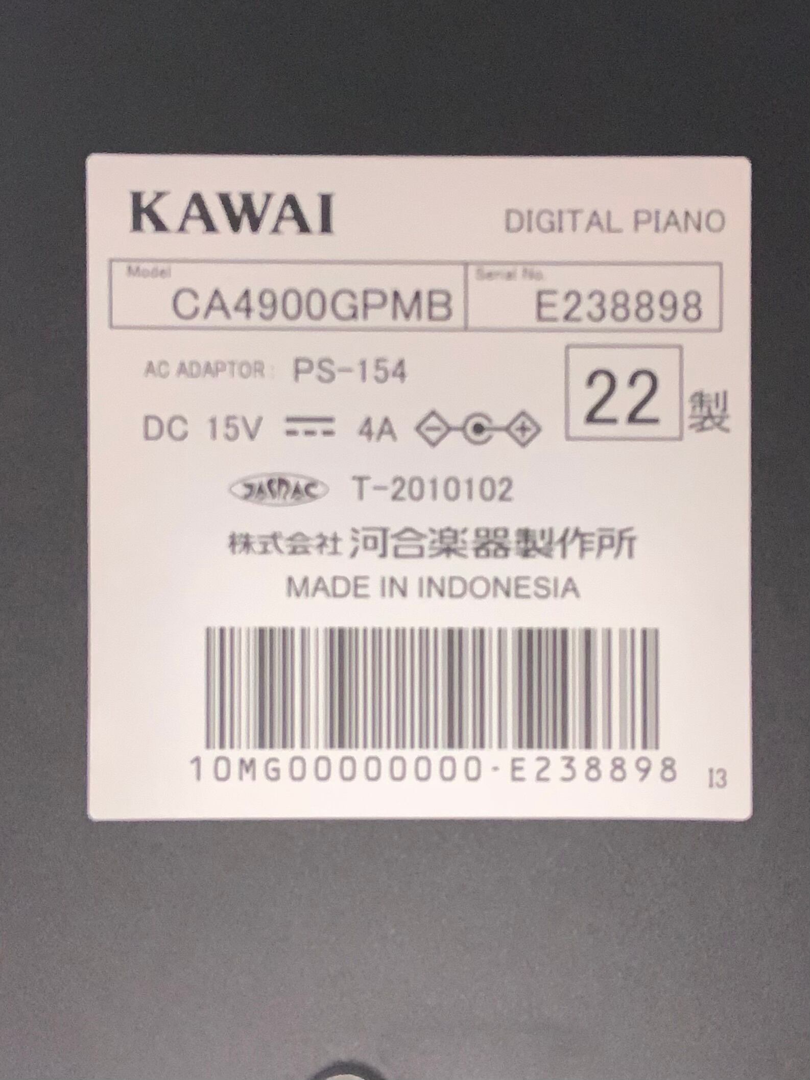 ★54661【電子ピアノ】KAWAI CA4900GPMB 22年製